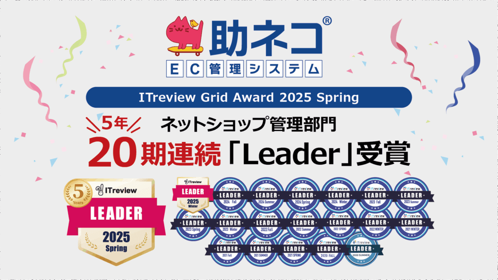 「助ネコ®EC管理システム」が、「ITreview Grid Award 2025 Spring」にて20期(5年)連続の「Leader」を受賞